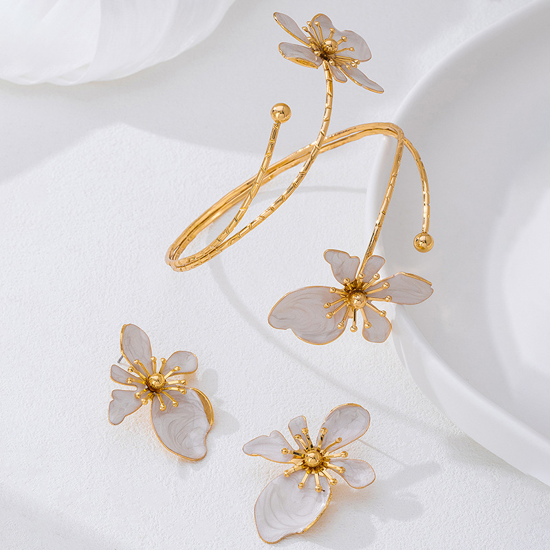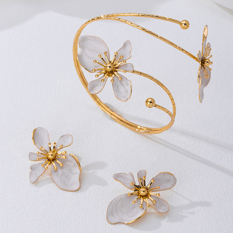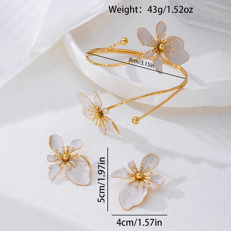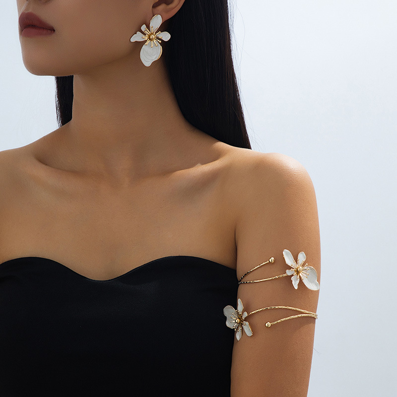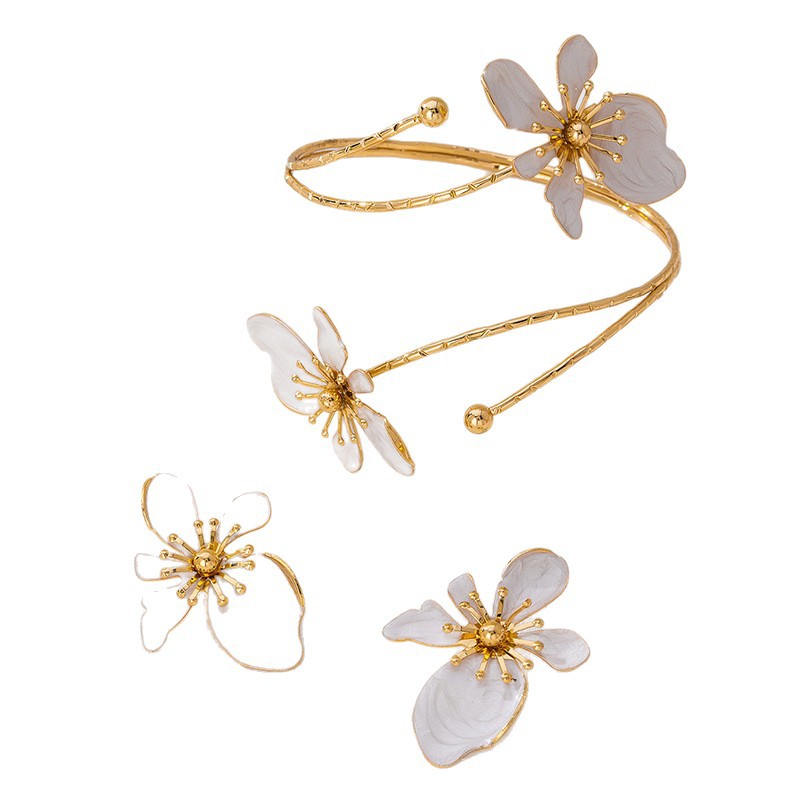 + Free Shipping1. Fashionable and personalized metal armband earring set, flower-shaped armband adjustable, suitable for single wear or stacking with multiple outfits